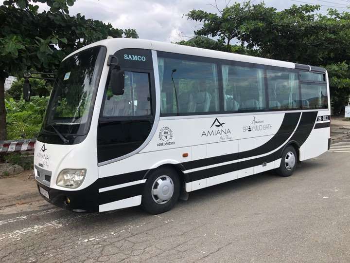 | From: Amiana Nha Trang To: Nha Trang Center | 11 AM & 3 PM | The main lobby Amiana Resort entrance | . Please arrange the resort’s shuttle service in advance at the front desk or by reaching out to our hotline at 0. . The resort offers shuttle service exclusively to guests who have reserved in advance without luggage or when seats remain available. |