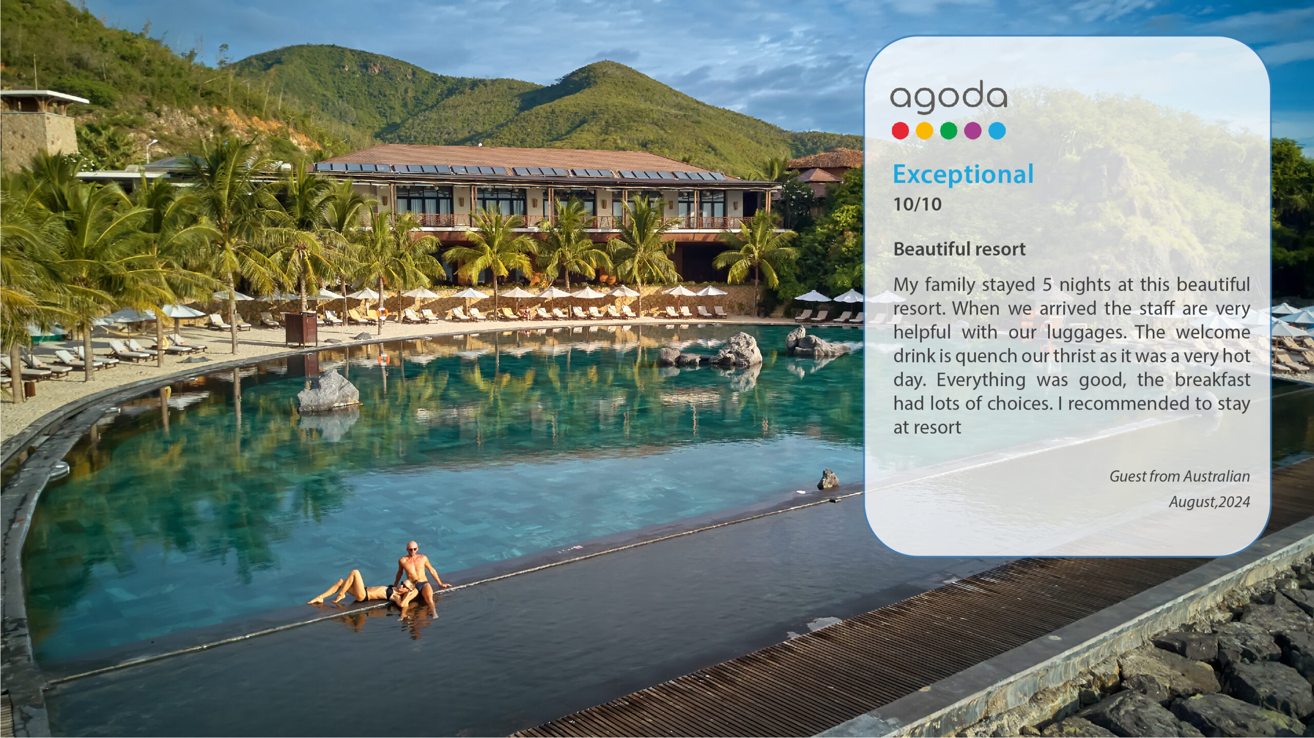 Nestled amidst the tranquil Nha Trang Bay, Amiana Resort is renowned for offering a sanctuary of luxury, where relaxation and rejuvenation intertwine seamlessly. The Agoda Customer Review Award 2024 is not only a testament to the resort’s unwavering dedication to exceeding guest expectations, but also a reflection of the countless cherished memories created for guests from around the globe, as evidenced by the glowing reviews from satisfied customers.