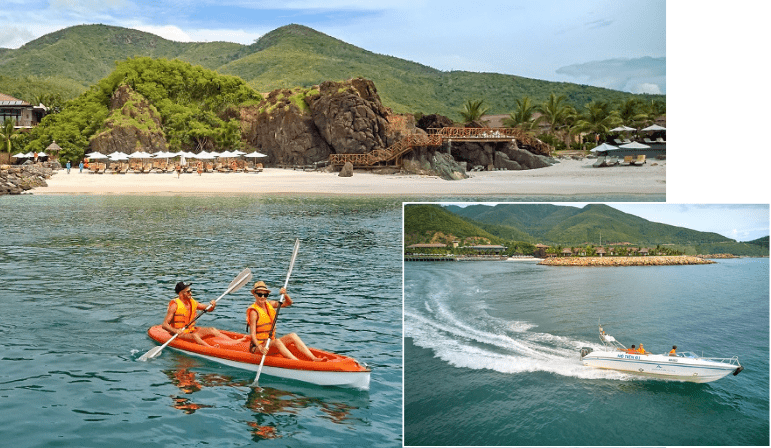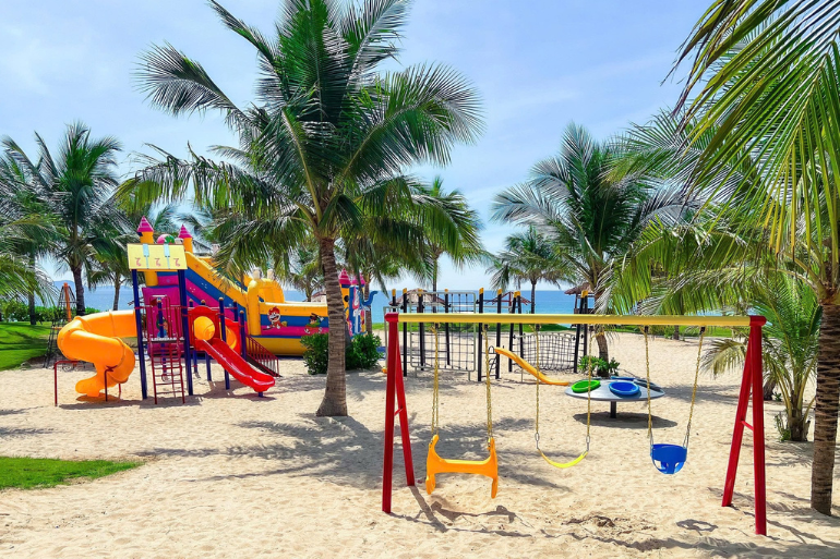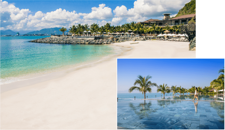 Bên cạnh đó, khu nghỉ dưỡng còn sở hữu bãi biển riêng yên bình với cát trắng mịn và làn nước trong vắt, tạo nên không gian lý tưởng để thư giãn, tắm nắng và tận hưởng trọn vẹn vẻ đẹp tinh khôi của biển cả.
