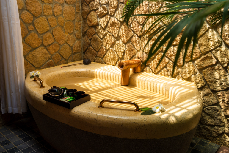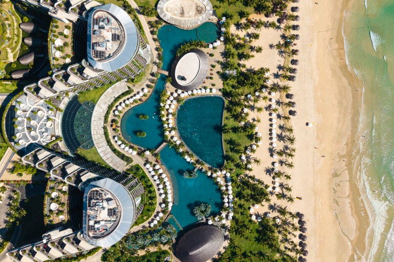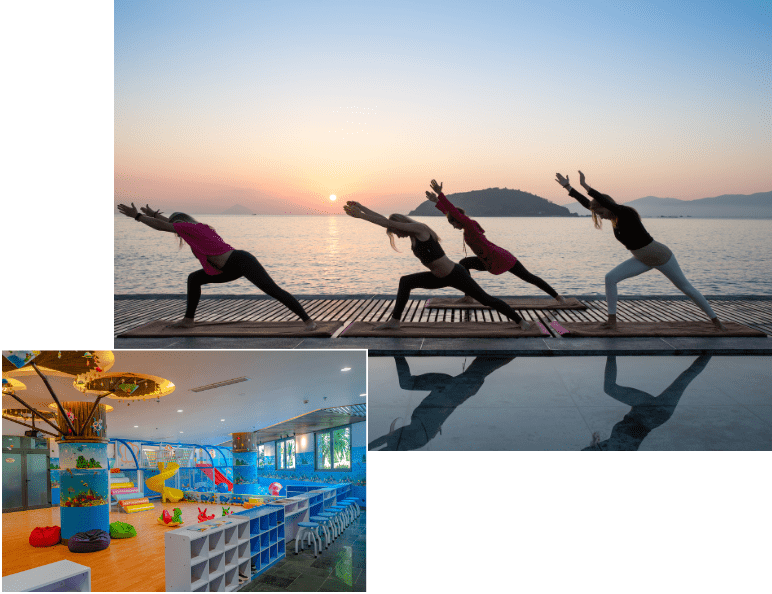 Hệ thống hồ bơi rộng đến 6.500 m² mở ra không gian nghỉ dưỡng đa dạng và đẳng cấp. Nổi bật là hồ bơi nước ngọt bốn mùa rộng 4.000 m² tại tòa nhà chính và 1.000 m² tại khu Villa, nơi bạn có thể thả mình thư giãn trong làn nước trong xanh quanh năm. Điểm nhấn đặc biệt là hồ Onsen nước nóng 500 m² giúp tái tạo năng lượng, cùng hồ bơi nước biển rộng 1.500 m² mang đến trải nghiệm gần gũi đại dương ngay trong khuôn viên.
